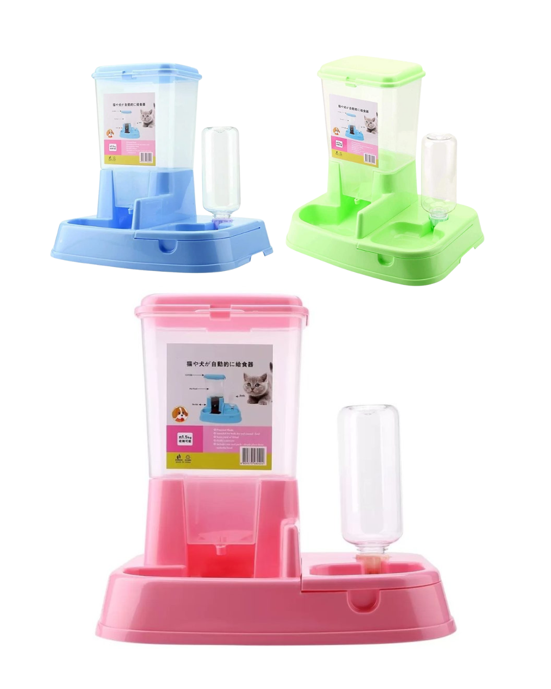 • Diseño reflexivo 2 en 1, incluye una botella de agua y una lata de comida, alimentará automáticamente a sus mascotas.