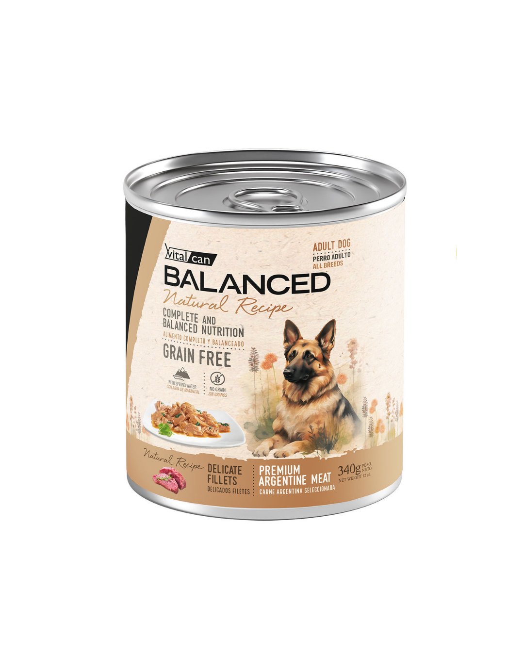 Receta a base de carne argentina seleccionada, reconocida internacionalmente por su gran calidad. Es fuente de proteínas de alto valor biológico aportando aminoácidos esenciales y colaborando al desarrollo y mantenimiento muscular.
