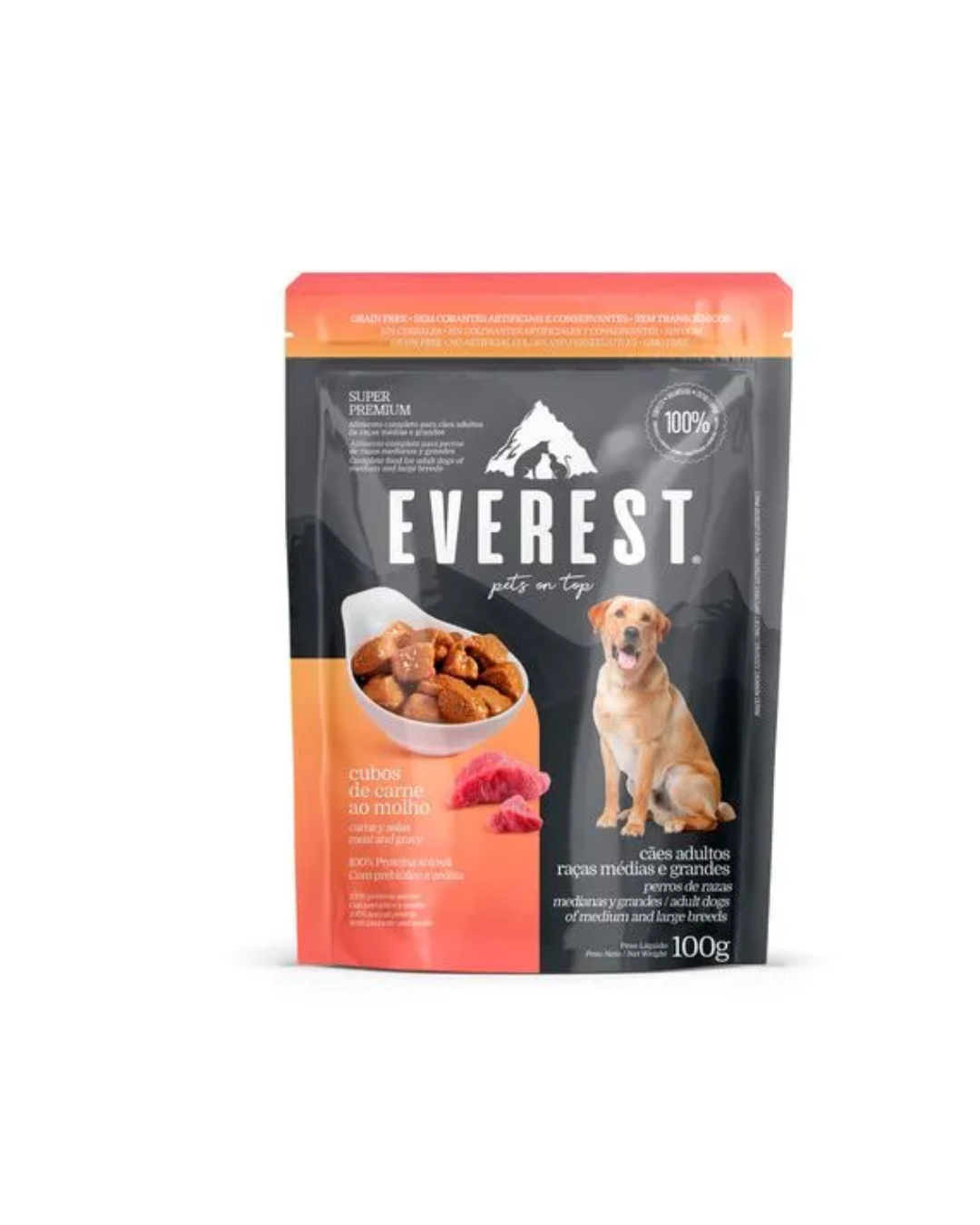 Comida húmeda Everest en cubos de carne en salsa para perros adultos.
